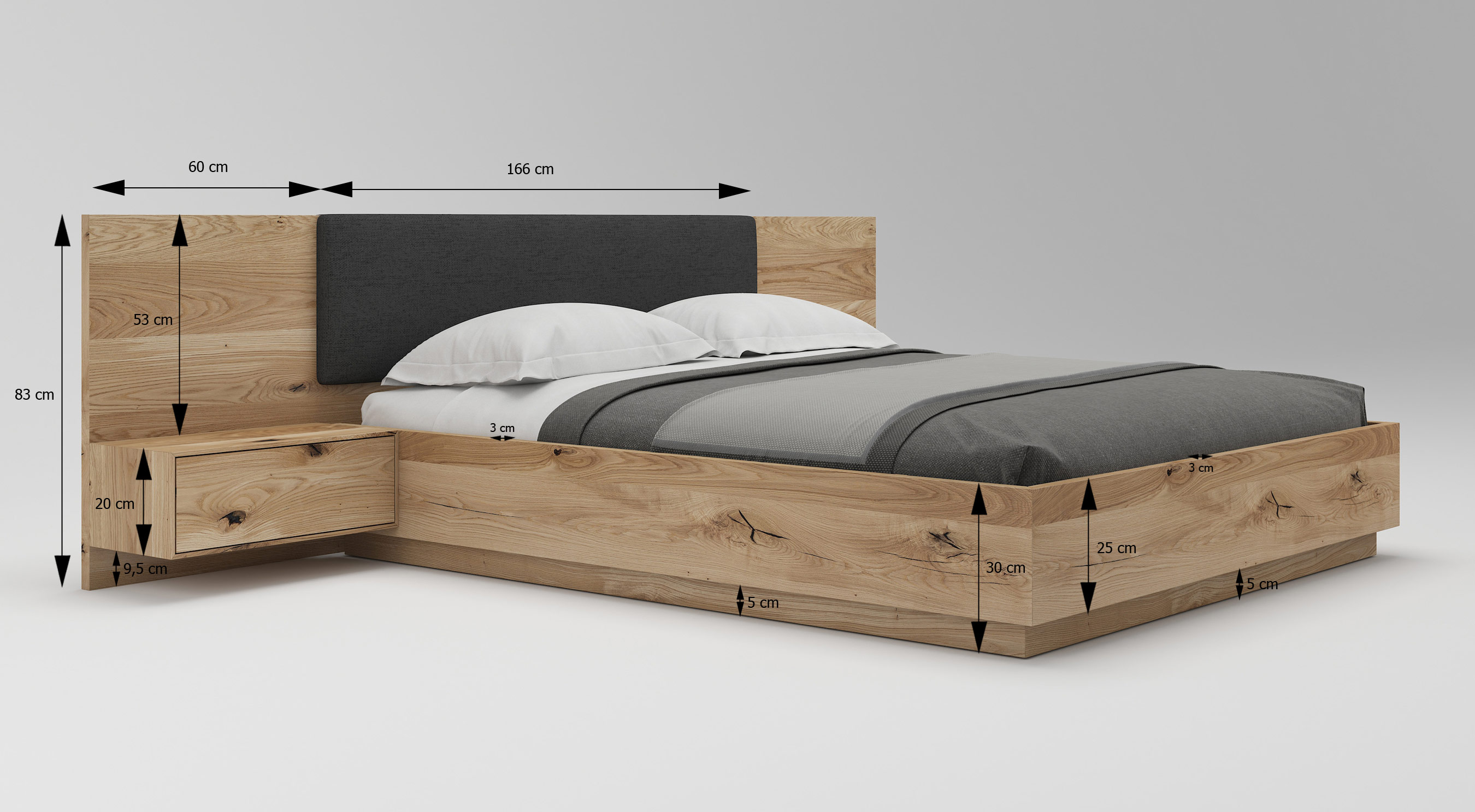 Die einzigartige Konstruktion der Eichenbetten gibt uns Sicherheit und garantiert einen ruhigen Schlaf. Das Aufstellen der Möbel auf starken und stabilen Rahmen harmoniert perfekt mit den einzigartigen Ästen und Ringen.