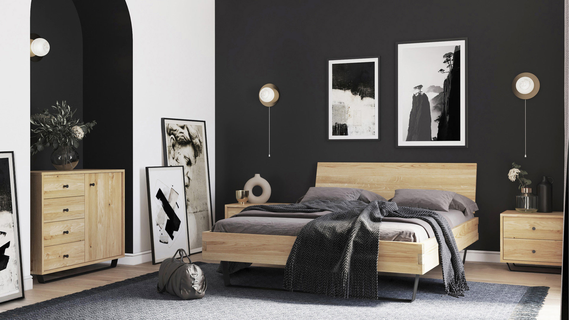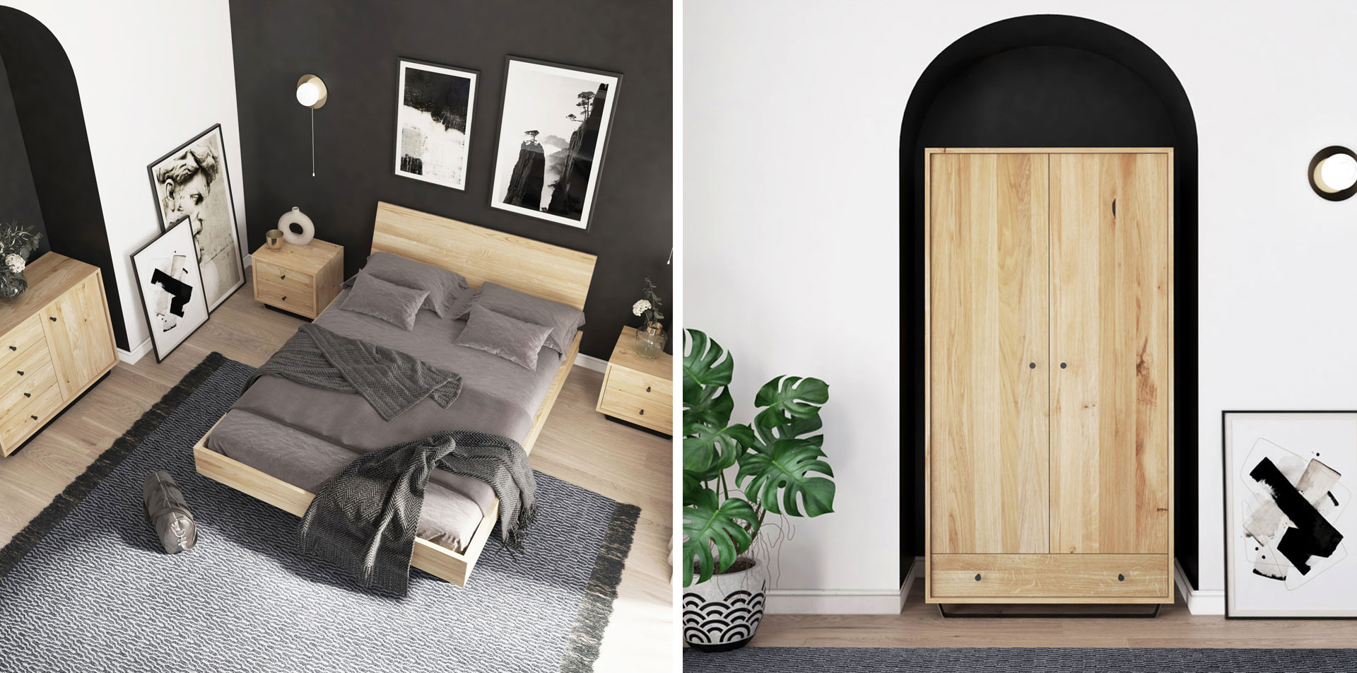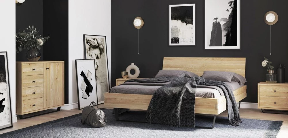 Eichenmöbel auf Metallbeinen eignen sich auch hervorragend für Wohnzimmer, wo sie meisterhaft mit Tischen und Couchtischen fusioniert werden können. Diese finden Sie ebenfalls in unserem umfangreichen Angebot. Durch diese Kombination bilden die Räume eine zusammenhängende Ganzheit. Ein modernes Schlafzimmer aus Eiche, eingerichtet mit Möbeln aus der Kollektion Steel, schafft eine Oase der Ruhe.