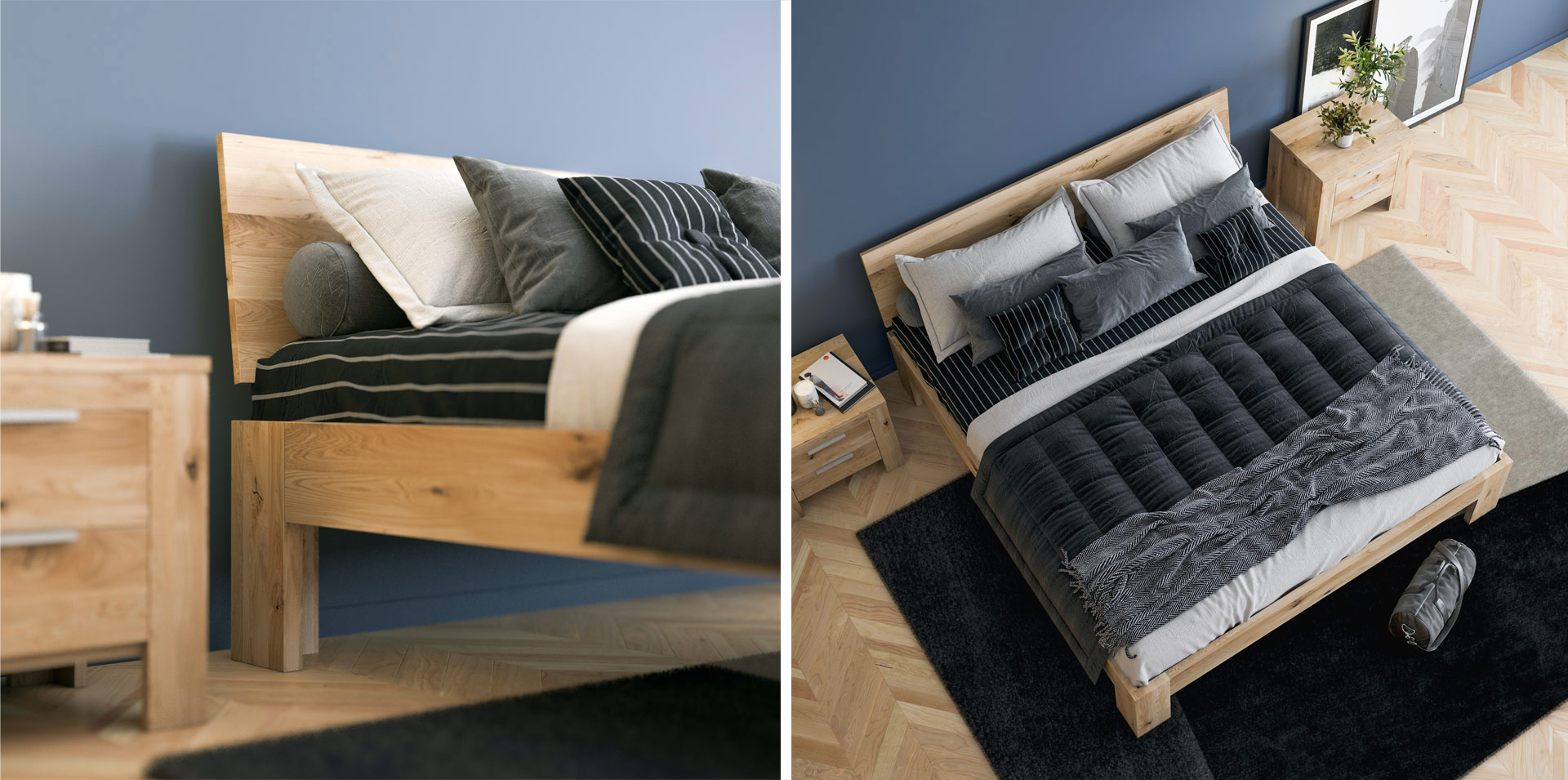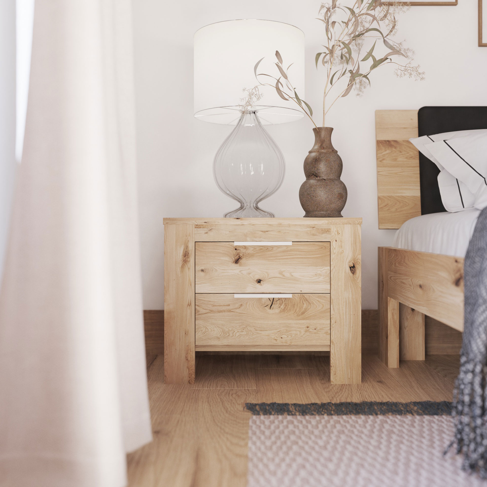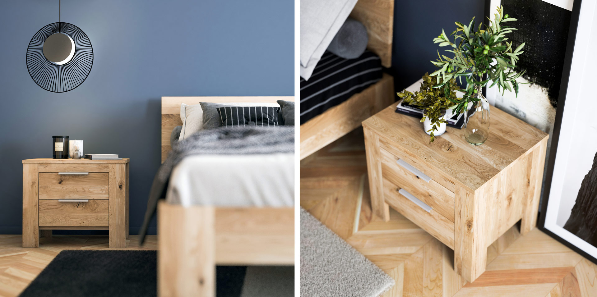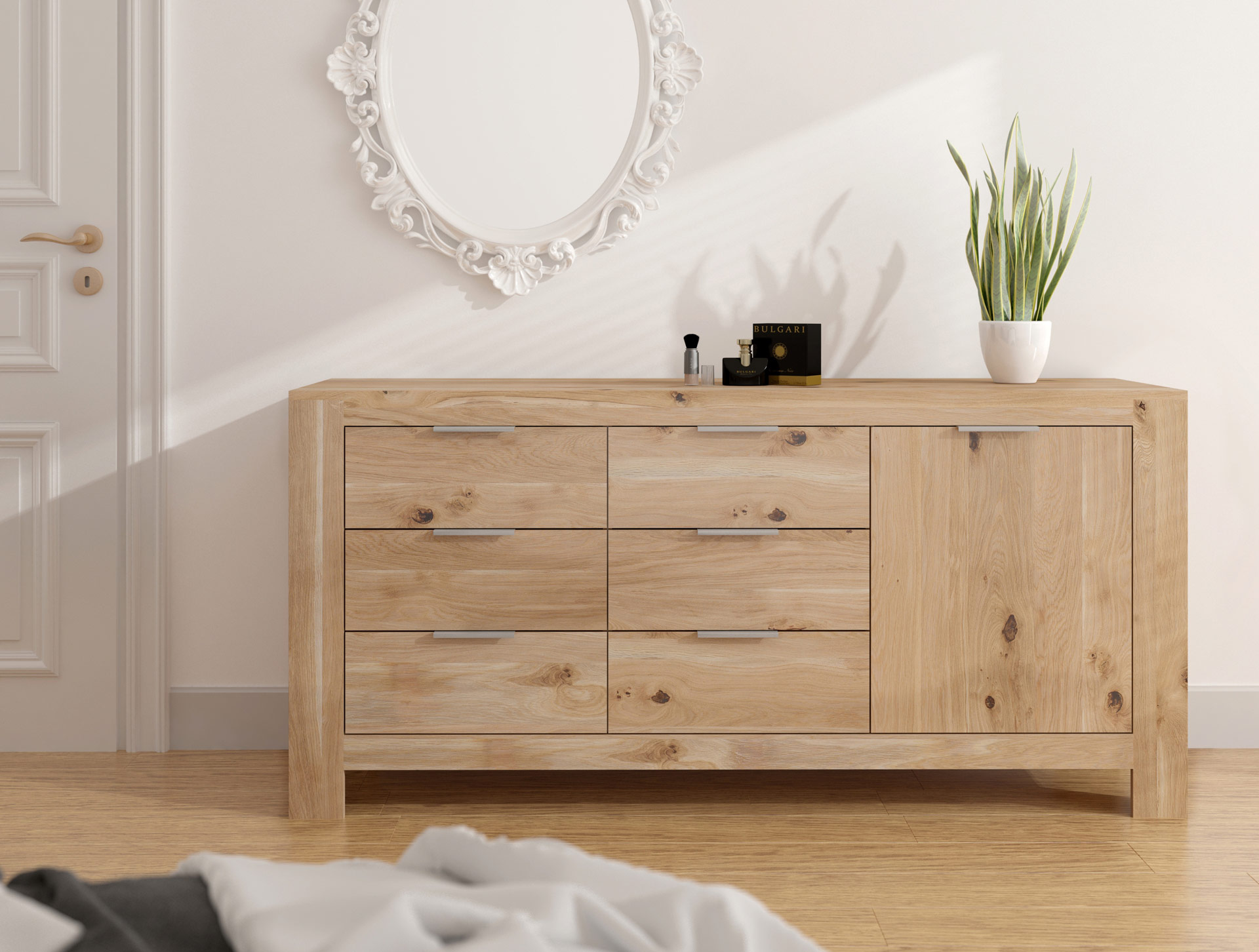 Die von uns präsentierten Möbel werden durch ihre langlebige und äußerst solide Konstruktion den Raum in unserer Umgebung perfekt ausfüllen. Eine Kommode und ein Kleiderschrank, die die Schönheit der edlen Eiche repräsentieren, helfen uns nicht nur, Platz zu sparen, sondern stellen auch einen gewissen Punkt unserer Wohnung dar, der ihr einen natürlichen Ton verleiht. Betten und Nachttische mit ihrer perfekten Verarbeitung machen unseren Schlaf zu einer wahren Regeneration der Kräfte und versetzen uns in die Natur.