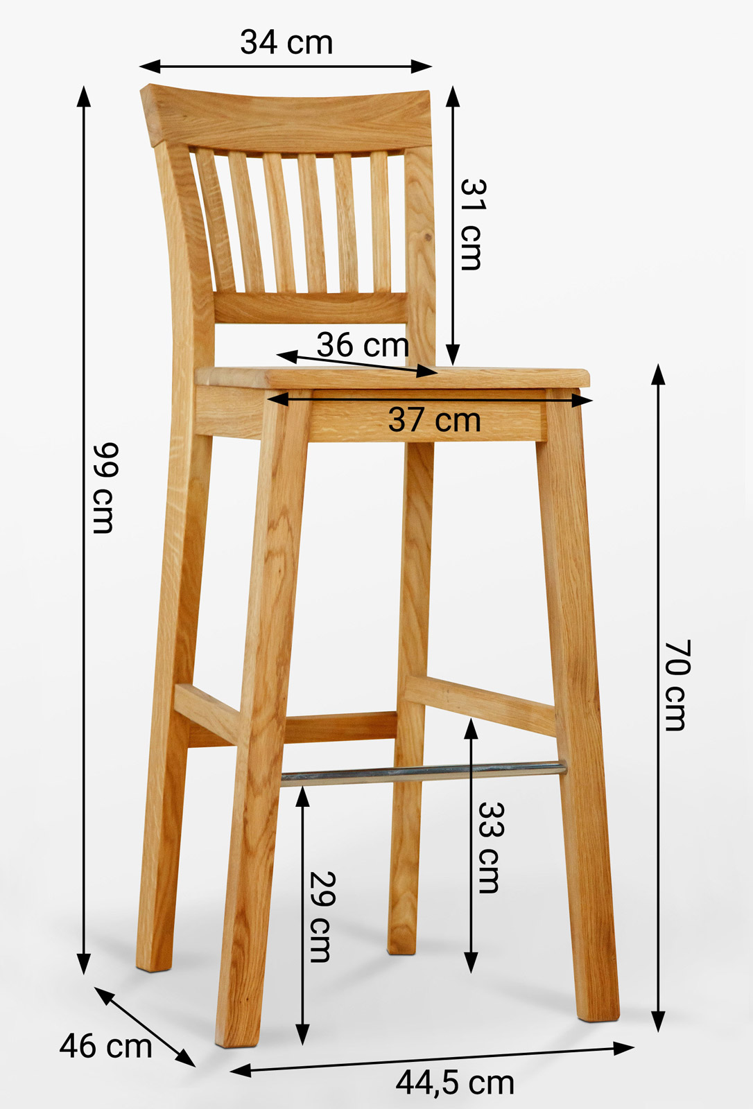 Die Sitzhöhe von 70 cm.