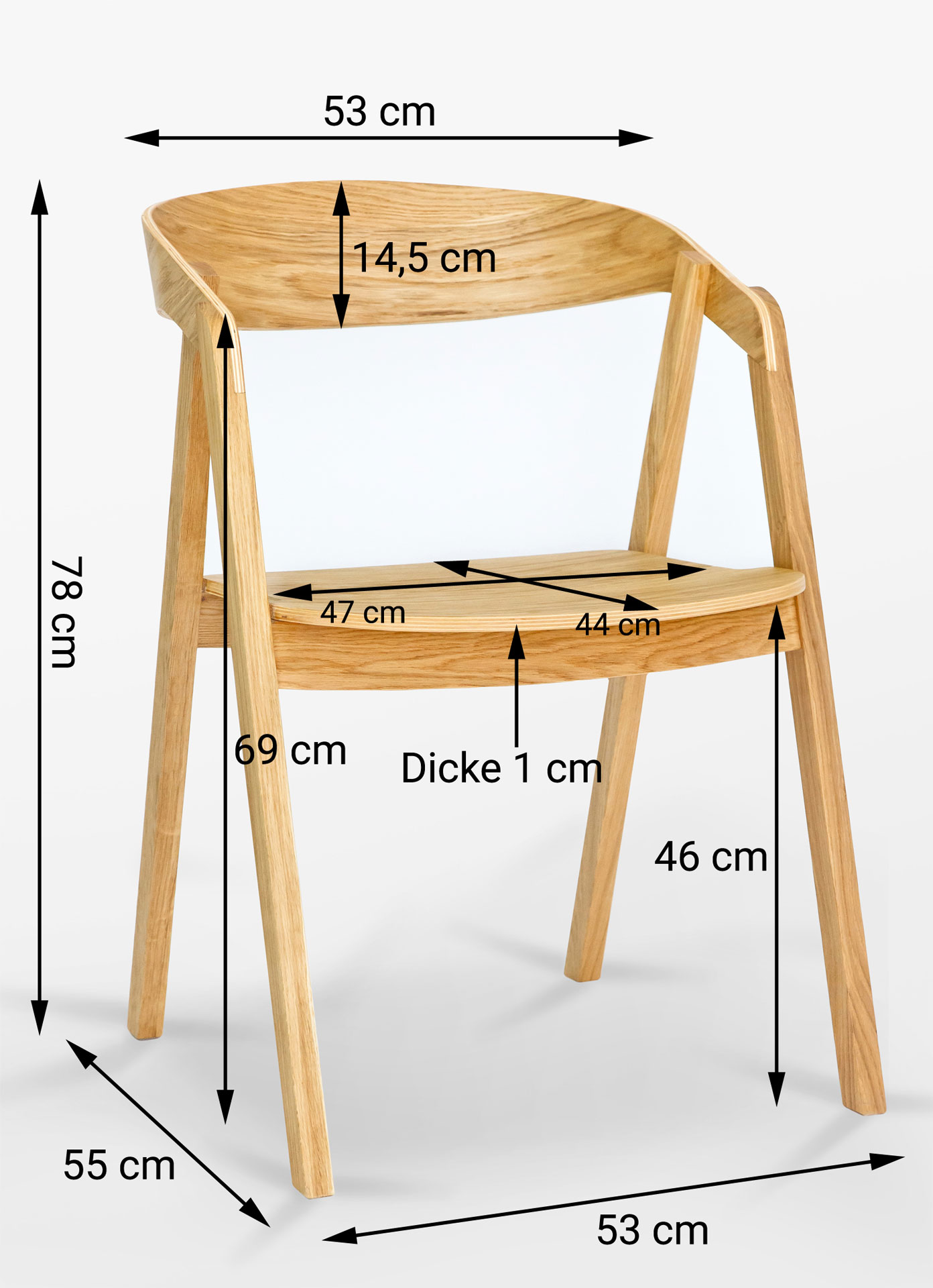 In der Grundausführung sind die Eichenstühle mit farblosem Öl behandelt. Dies ist eine Standardfarbe für die Eiche-Kollektion.